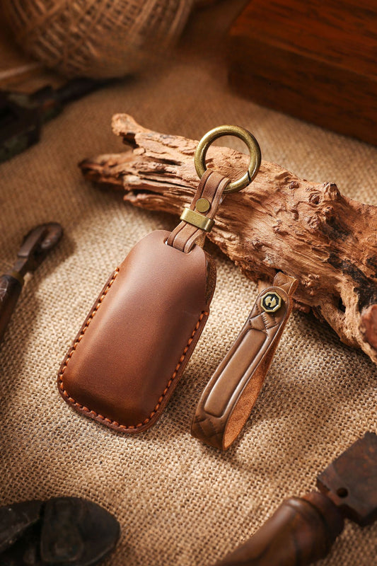 [BMW] Retro key cover for BMW 5 series blade key case leather car key case cowhide new key chain